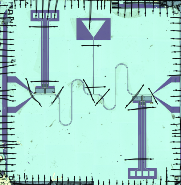 Microscope image of a chip combining a vibrating nanotube and a microwave resonator (2019)
